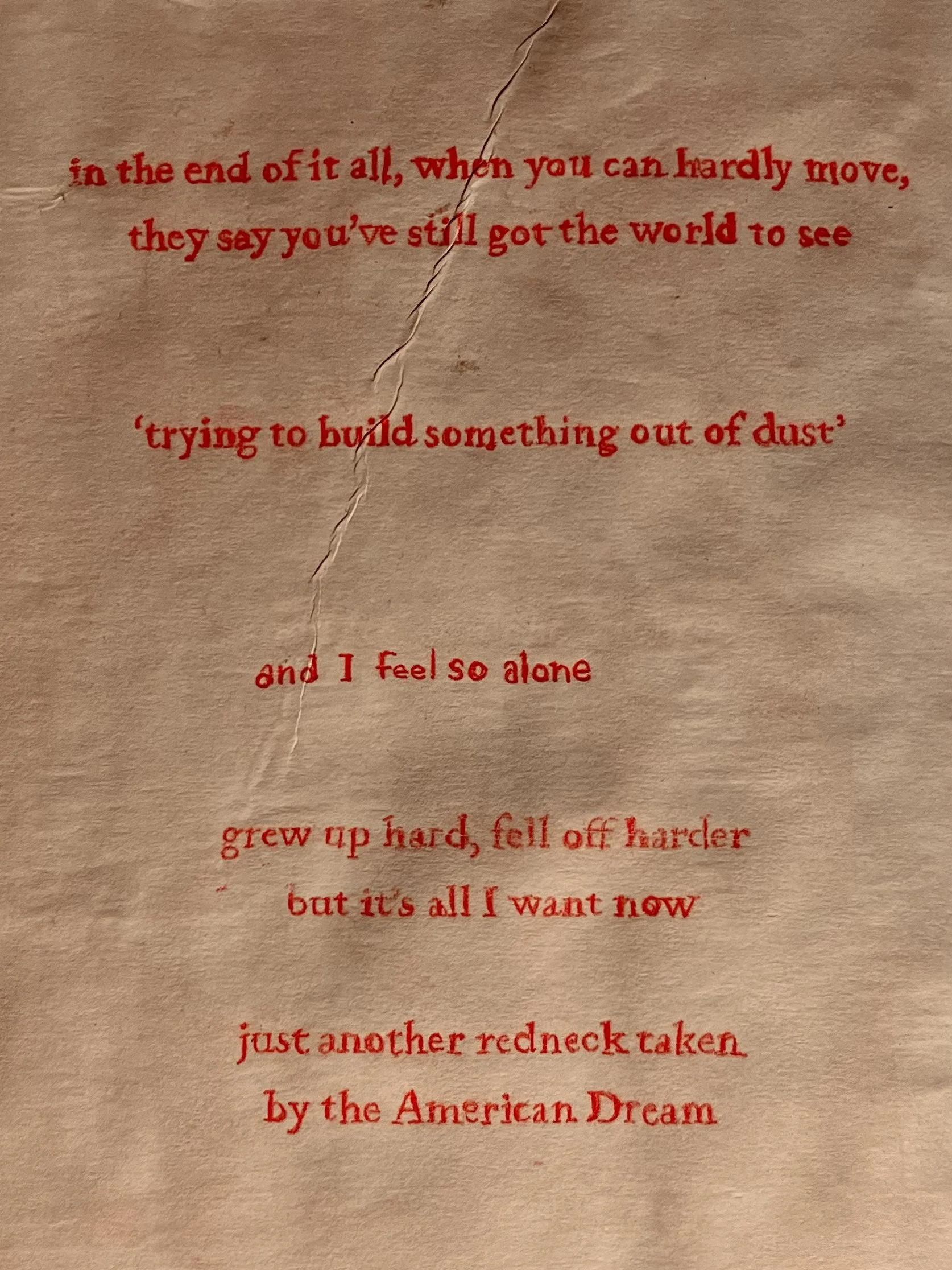 Handmade & handbound, ‘Route | 32 | Miles’ & ‘Son of a Preacher’ utilize scavenged materials, drawings, & accompanying text into narratives of intersecting identities navigating complicated hardships.